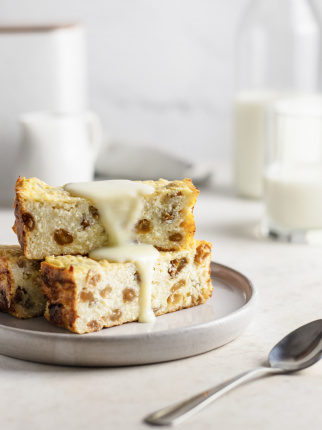 Atsevišķā bļodiņā sajauc krējumu ar cukuru un pārlej pāri plātsmaizei, kas jau viegli apcepusies. Cep vēl aptuveni 10 minūtes, līdz virskārta ir zeltaini brūna. Pēc izņemšanas plātsmaizi pārkaisa ar pūdercukuru un atdzesē.
